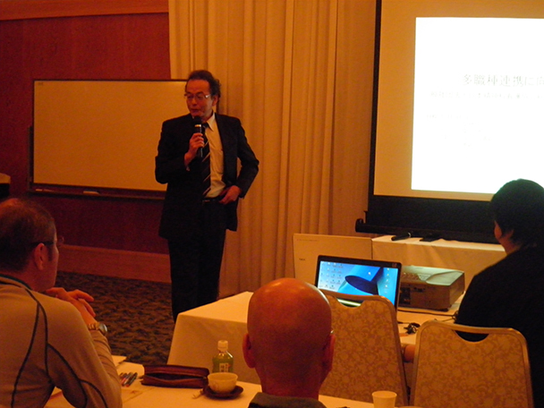 1日目はチーム医療、看護実践の環境の変化、専門職の特性、クリニカルパス、チーム医療における看護の業務、役割、看護師の機能と権限等を幅広く、わかりやすく説明されました。また懇親会においては天賀谷先生を囲み地酒の話、協会の話などに会話が弾み、ついつい本音が飛び出し楽しい懇親会でした。